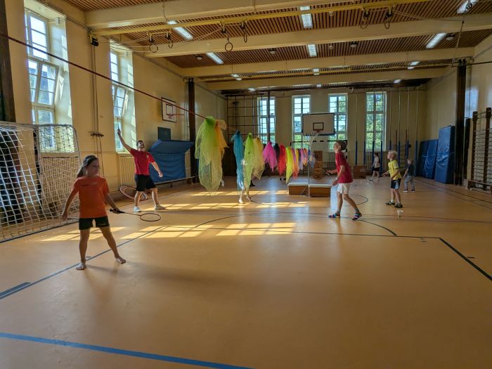 Auf dem Plan standen: Badminton, Basketball, Capoeira, Floorball, Fußball, Geschicklichkeitsparcours, Handball, Leichtathletik, das Sportabzeichen, Tanzen, Tischtennis, Turnen, Wasserspiele
