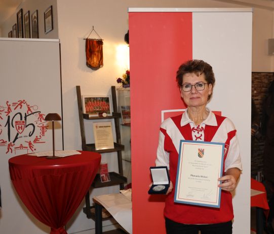 Für den VfB Hermsdorf durfte sich Manuela Weber, die seit vielen Jahren unermüdlich für den Verein tätig ist und diesen maßgeblich prägt, über die Medaille in Silber freuen.